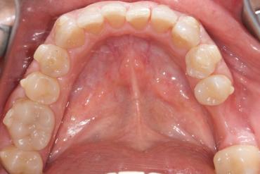 Condition after the reduction of the interdental space with the FitStrip™ — a place was created for further derotation of the incisors.